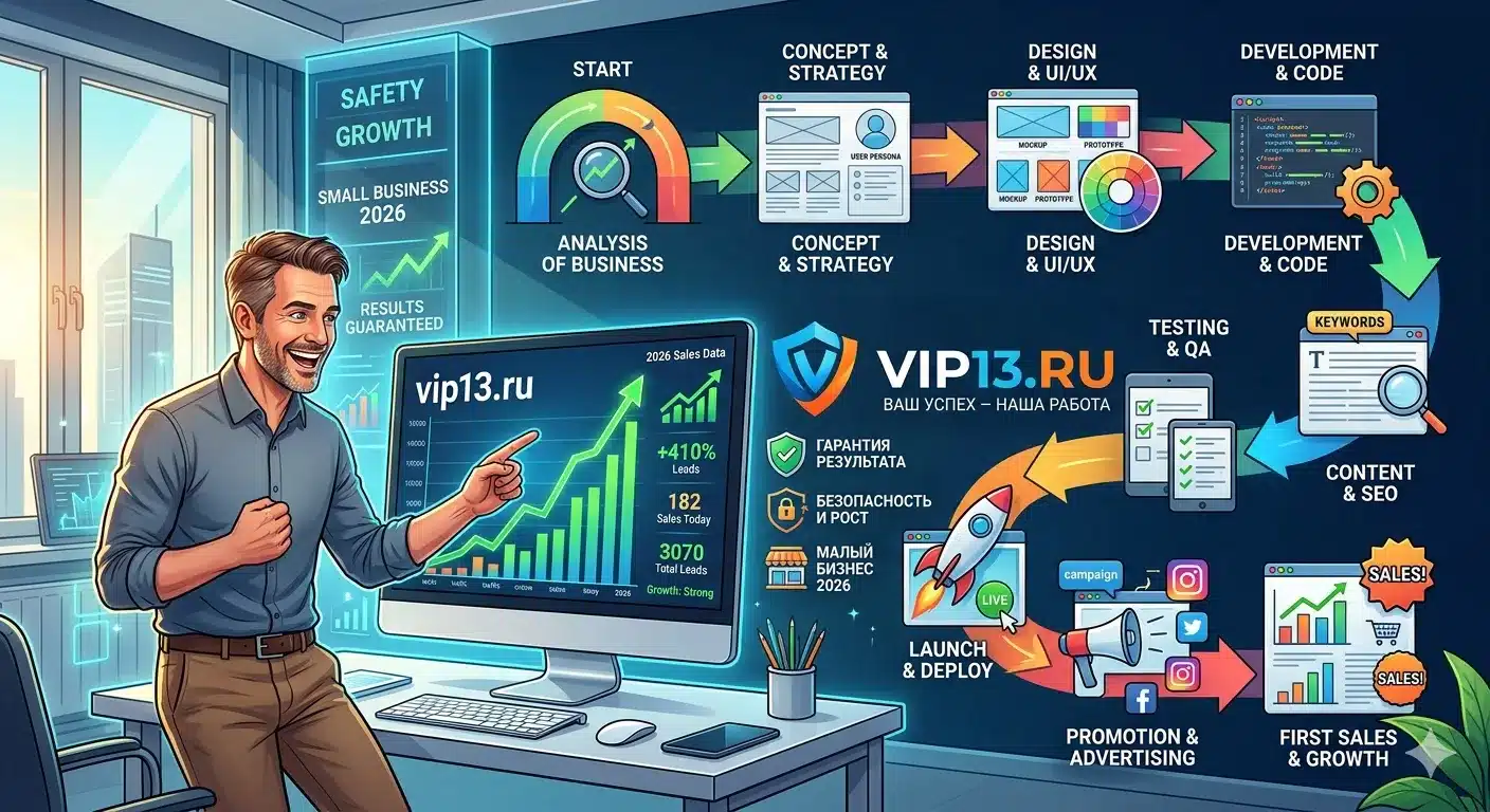 Разработка сайта под ключ от vip13.ru в 2026 году — это не просто новый сайт. Это инструмент, который приносит реальные деньги, экономит ваш бюджет и даёт конкурентное преимущество. Вы получаете современный, быстрый и продающий сайт без риска потерять деньги.