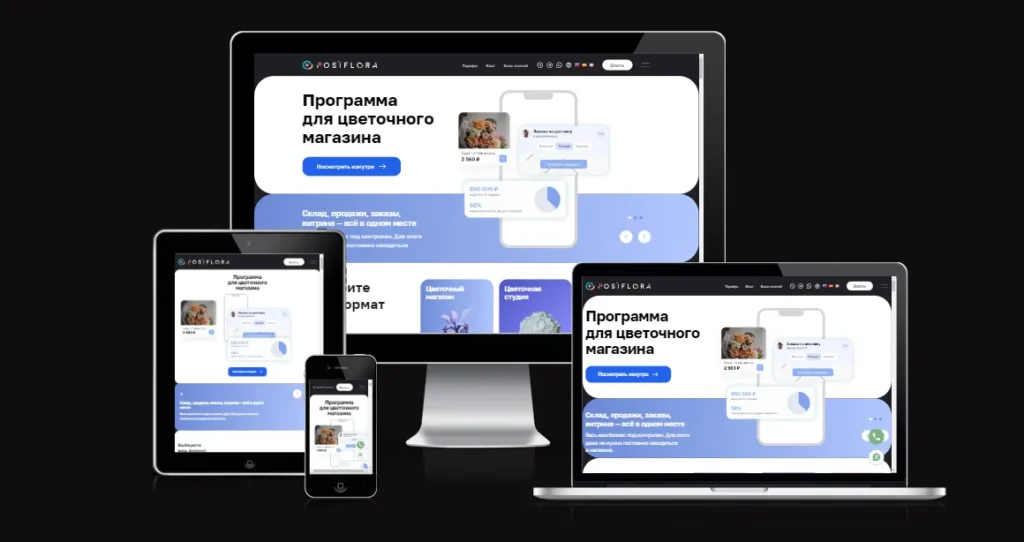 Вот несколько примеров, как может выглядеть готовый адаптивный сайт на разных устройствах (компьютер, планшет, смартфон)