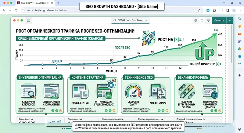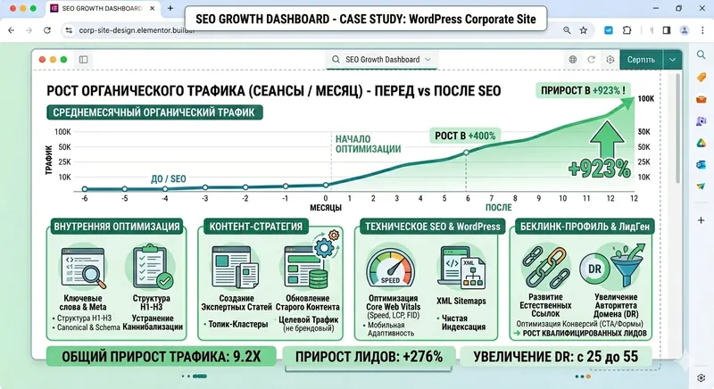 «Рост органического трафика после SEO-оптимизации корпоративного сайта на WordPress».